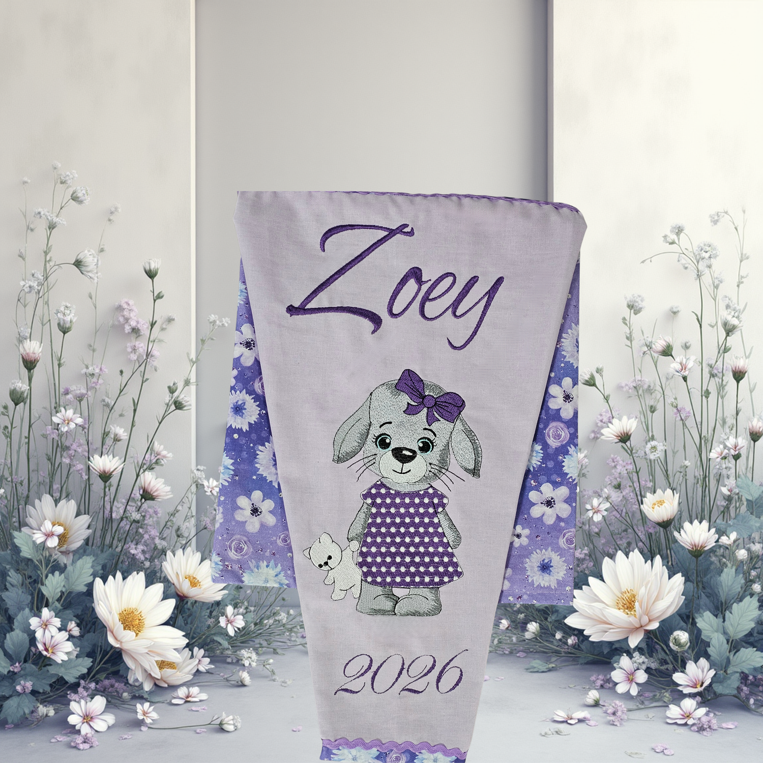 Stoff-Schultüte mit einem süssen Hasen – ca. 100 cm Gesamtlänge